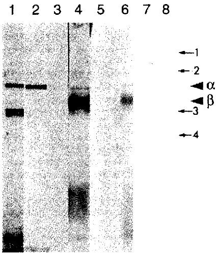 and ~ pGEX fusion proteins. Small arrows marked 1, 2, 3 and 4