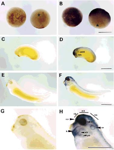 The LIM double zinc finger motif locates in several developmentally functioning and cytoskeletal proteins, and is considered to act as a specific motif for protein-protein interactions. LIM kinase (LIMK) is a novel protein kinase containing two LIM motifs at the N-terminal, the function of which has yet to be clearly defined. In this study, we cloned a cDNA encoding Xenopus counterpart of human LIMK1 gene by RT-PCR mediated cloning, and designated in Xlimk1. Xlimk1 is highly homologous to mammalian LIMK1 in each structural domain, particularly in LIM and protein kinase domains. In Northern blot analysis, two distinct Xlimk1 transcripts of 9.0 Kb and 3.7 Kb were present in early cleavage stages of the embryo. Both mRNA species were subsequently decreased at the gastrula stages. The 9.0 Kb of Xlimk1 mRNA again appeared in late neurula stage, then the expression level gradually increased in later stages of the embryo. Whole-mount in situ hybridization analysis showed the localization of Xlimk1 transcripts in the animal half of the blastula embryo. In post-neurula stages, specific signals for Xlimk1 were predominant in the anterior (head) region of the embryo, including developing brain, hyoid and branchial arches, and anlagen of sensory organs. These results indicate that Xlimk1 may play an important role in neural development and formation of anterior (head) structures in the Xenopus embryo.