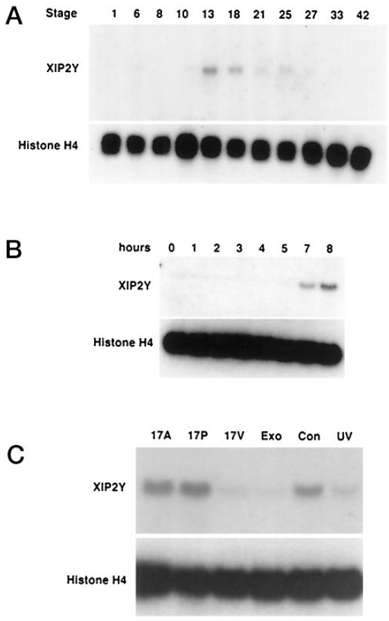 that XlP2Y transcripts are first detected 7 h (stage 12) after