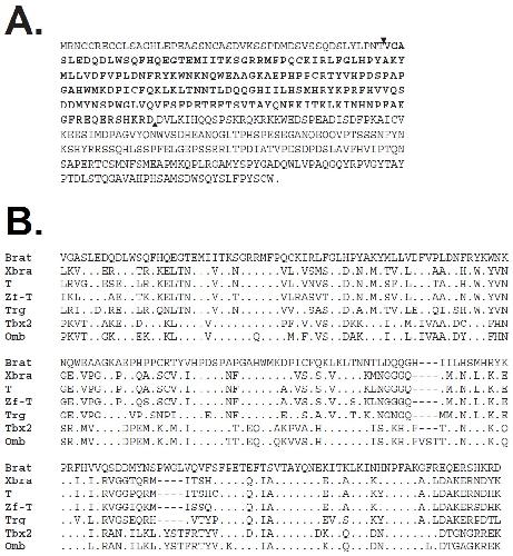 between these domains and the T domain of Brat is: Xenopus Brachyury (Xbra,