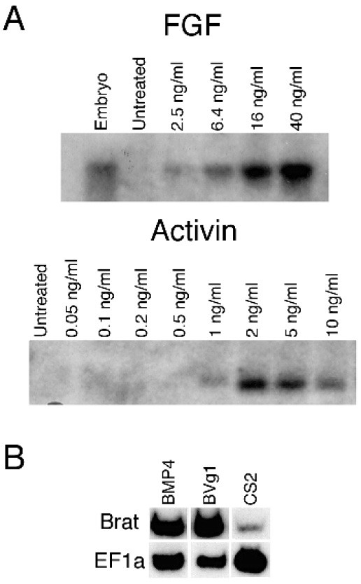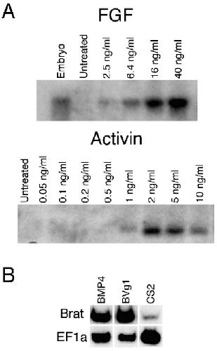 TGF-b families. (A) Brat displays dose-dependent induction by FGF