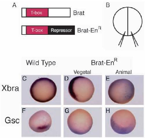 Brat-EnR and Lac Z mRNA. Note that the expression of gsc and Xbra