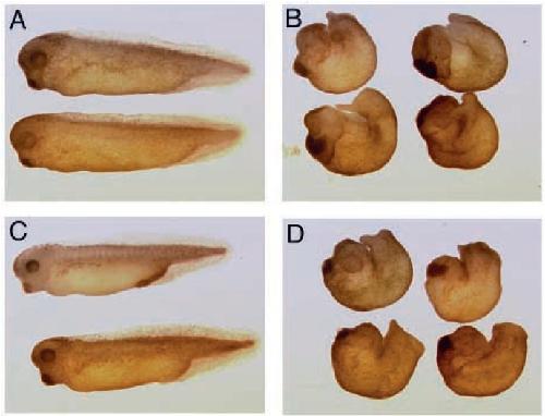 (A) Wild-type stage 34 embryo. (B) Embryos injected with 250 pg