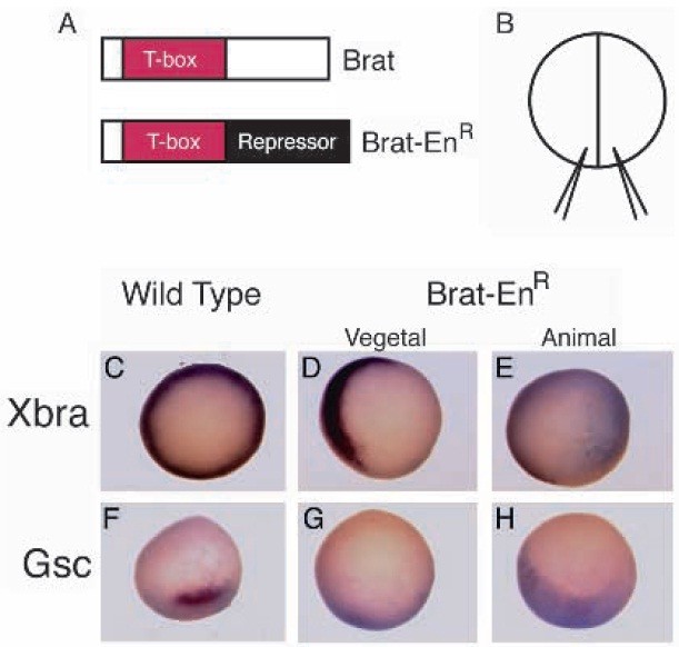 the Drosophila engrailed repressor domain, Brat-EnR (lower). The Tbox