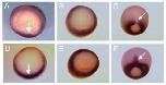 to the animal and vegetal pole. Albino oocytes (A) are shown in the