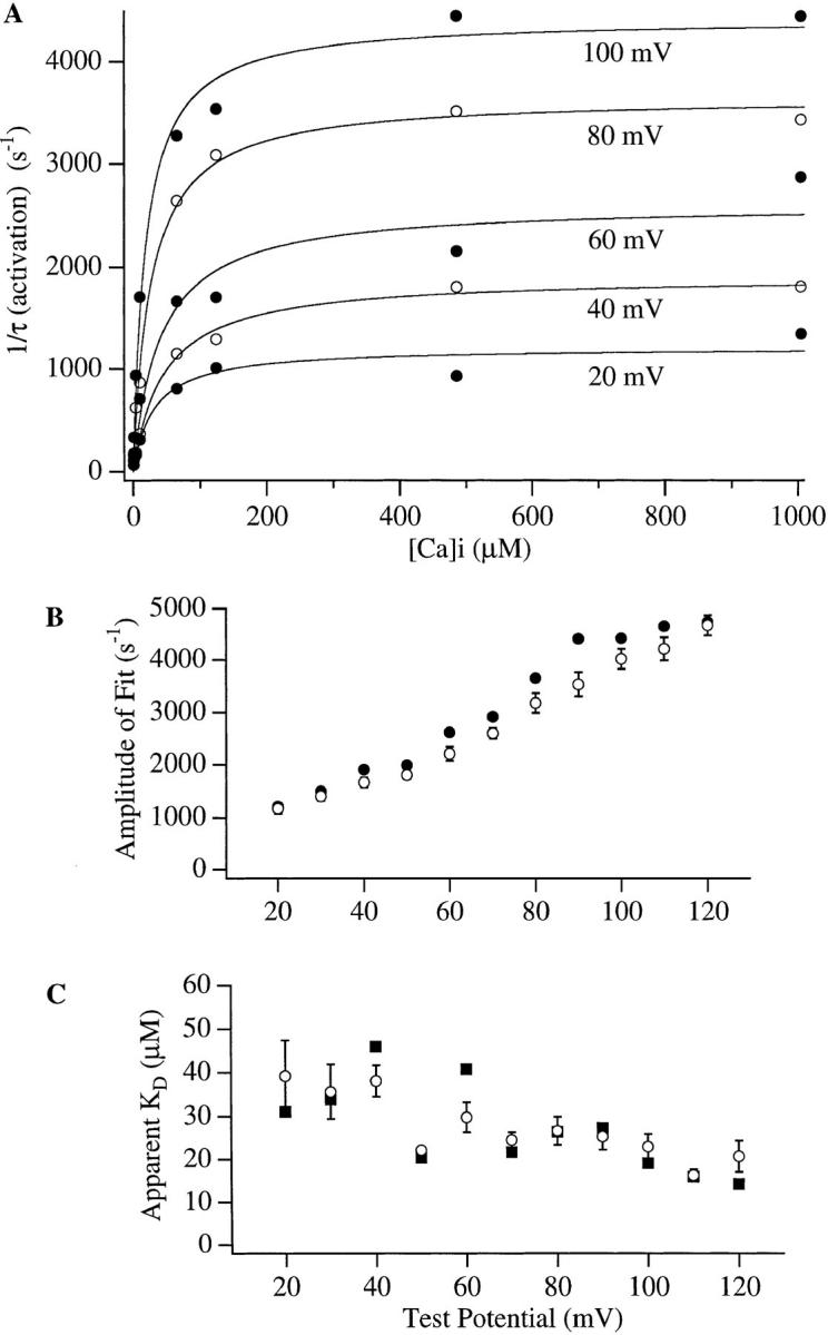 Moczydlowski, Gating kinetics of Ca2+-activated K+ channels from rat muscle incorporated into planar lipid bilayers. Evidence for two voltage-dependent Ca2+ binding reactions. 1983, Pubmed