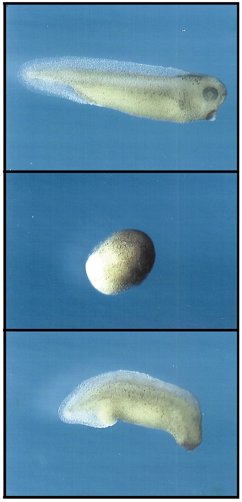 blastopore lip at the top of the panel and the neurula (stage 19) embryo is shown as a dorsal view with the posterior end at the bottom