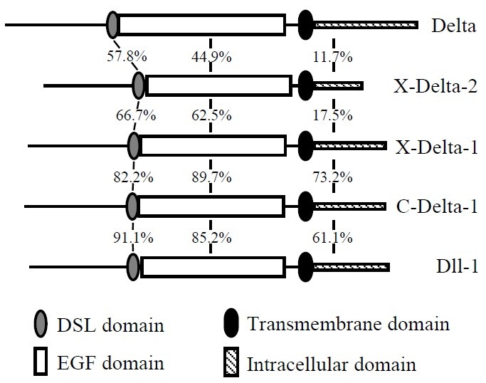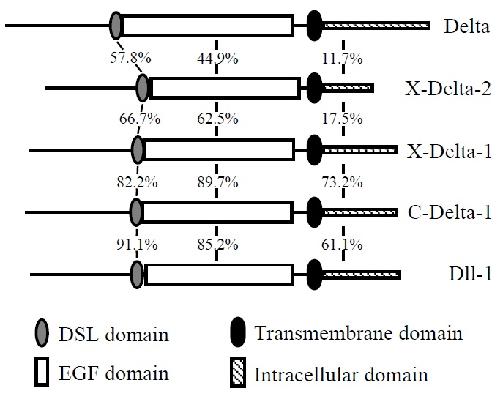 Drosophila (Delta), mouse (Dll-1), Chick (C-Delta-1) and Xenopus