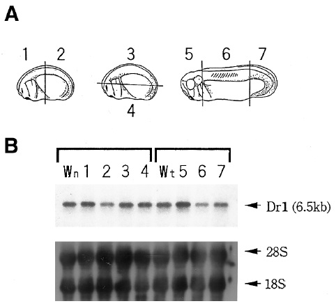 throught stages. The major band (6.5 kb) as Drl mRNA. and ISS