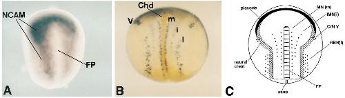 neurula. The N-CAM staining demarcates the early neural plate. Note that the presumptive floor plate is devoid of N-CAM transcript,
