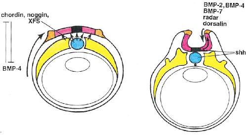 the shh signal, which is opposed by a number of BMP-related molecules expressed in the dorsal neural tube and nearby ectoderm. |