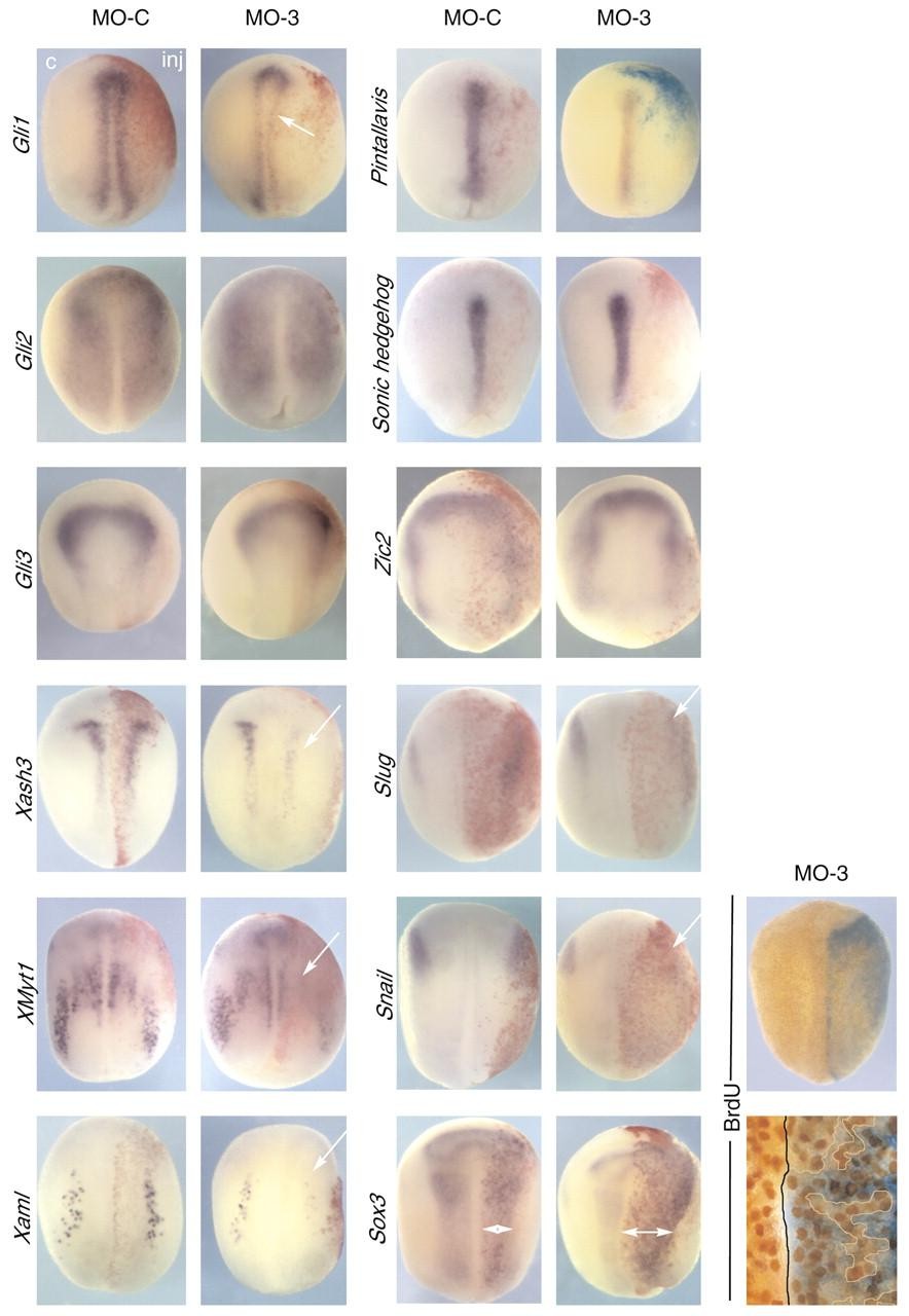 Genes referenced: ascl2 foxa4 gal.2 gli1 gli2 gli3 myc myt1 neurod1 neurog1 runx1 shh snai1 snai2 sox3 tbx2 tubb2b zic2