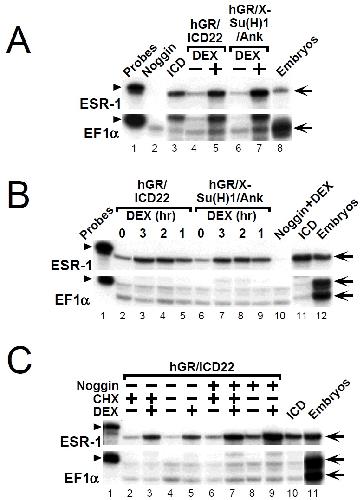 Fig. 5. ESR-1 expression is blocked by X-Su(H)1DBM. Test RNAs