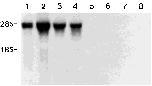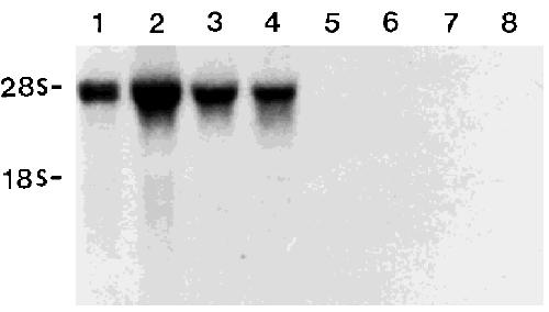 5, muscle; Lane 6, skin; Lane 7, liver; and Lane 8, ovary. Marks