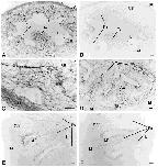 the degenerating larval epithelium is negative. 3525. Bars: 20 μm.