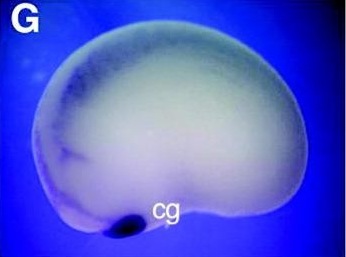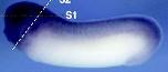 mxd1 (MAX dimerization protein 1) gene expression gene expression in Xenopus laevis embryo, assayed via in situ hybridization, NF stage 19, lateral view, anterior left, dorsal up. |