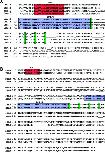 Figure 1. Amino acid alignment of the predicted open reading frame (ORF) of Xmad1, Xmad3, and Xmnt (GenBank accession numbers: AY964104, AY964105, and AY964106) with the corresponding mouse sequences. A: Comparison of Mad1 and Mad3 protein. B: Comparison of Mnt sequences. The SID repressor domain, the bHLH domain, and the leucine zipper domain are indicated by green, red, and blue bars, respectively. The overall amino acid identity shared between the Xenopus and mouse sequences was: Mad1 (72%), Mad3 (60.4%), and Mnt (55.7%); within the SID domain: Mad1 (95%), Mad3 (90%), and Mnt (80%) and within the bHLH domain Mad1 (92%), Mad3 (70%), and Mnt (100%). |
