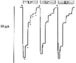 Figure 2. Representative tracings of macroscopic inward Li+current recorded in three different oocytes expressing wild-type ENaC αβγ subunits. Substitution of 20 mM KCl with 20 mM LiCl in the external sucrose buffer medium (•) induced an inward Li+current that was inhibited by addition of 10 nM, 100 nM, 330 nM, 660 nM, 5 μM indicated by the filled triangles (▴). |