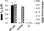 Figure 3. Cell surface expression and macroscopic ILiof wt ENaC (n = 39), triple Cys mutant (αSCβSCγSC) (n = 36) and βγ subunits (n = 41). Filled bars represents ILi. Hatched bars represents specific binding per oocyte of M2AB ([125I]M2IgG1) antibodies (fmols/oocyte) directed against a FLAG epitope introduced in the ectodomain of β and γ wt and mutant subunits. *Denotes statistical significance <0.001. |