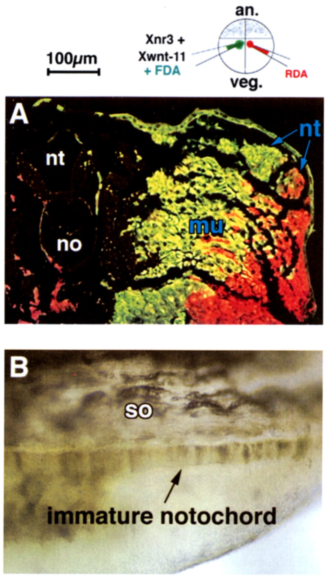 Xnr3, 100 pg Xwnt-ll and 50 ng Fluorescein dextran (FDA) into one