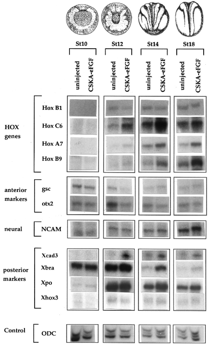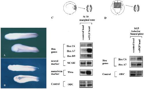 HoxA7, HoxB9 and NCAM) and processed for RNAase protection analyisis. (D) The anterior and middle neural plate was taken from stage 13