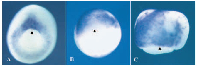 Arrowheads indicate the dorsal lip of the blastopore. |