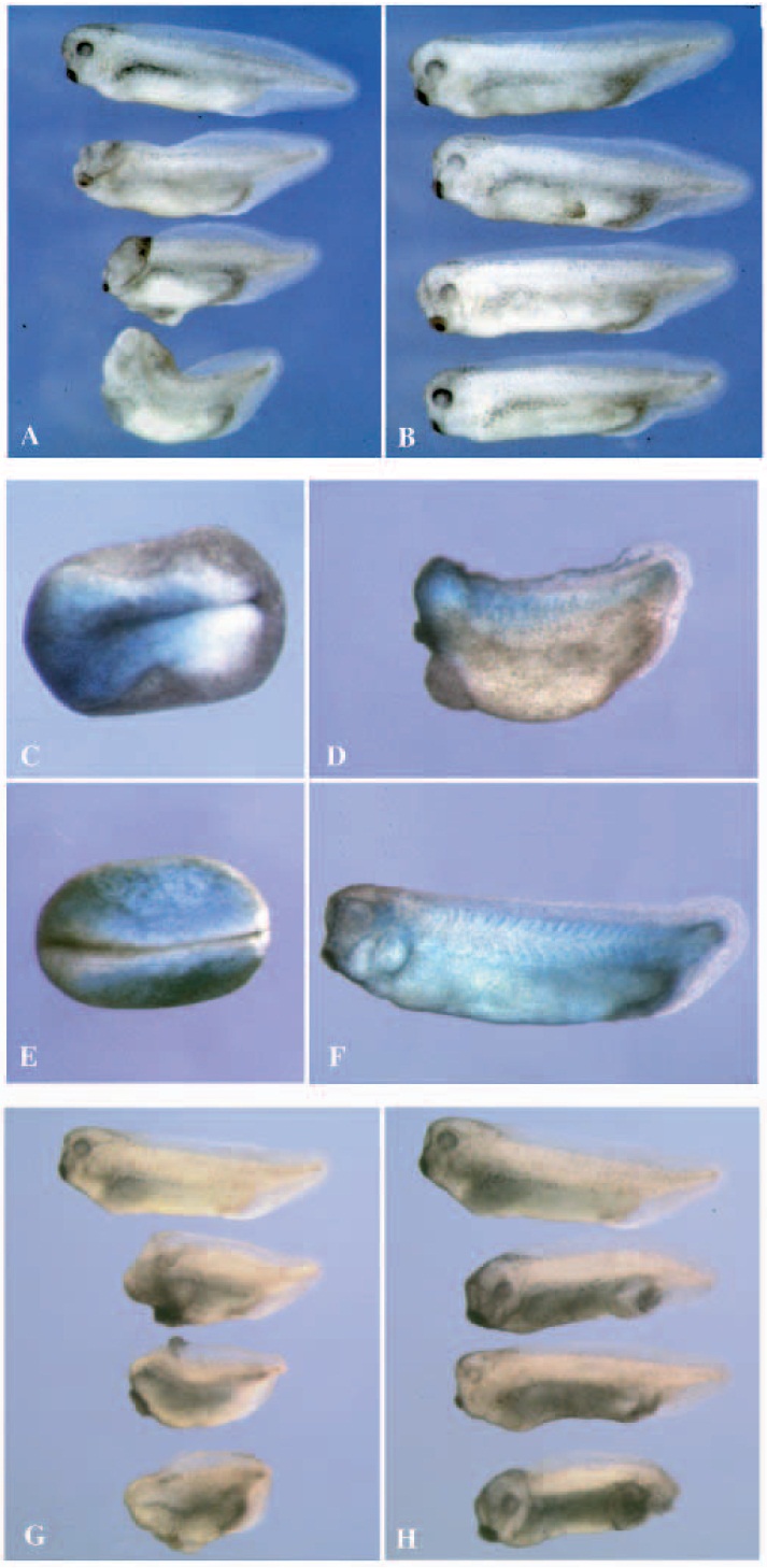 the bottom three embryos have been injected with 200 pg of Xcad3