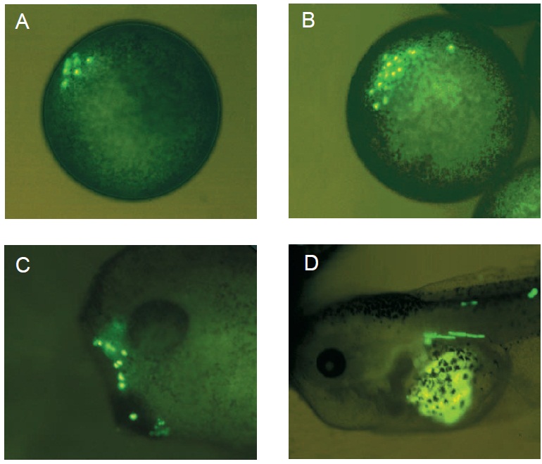 blastomeres. (A) Stage 8.5; (B) stage 20; (C) stage 25; (D) stage 37;