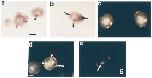 level of accumulation in one precloud while open arrow points to low level of accumulation); (f) hybridization of Vg1 probe to early