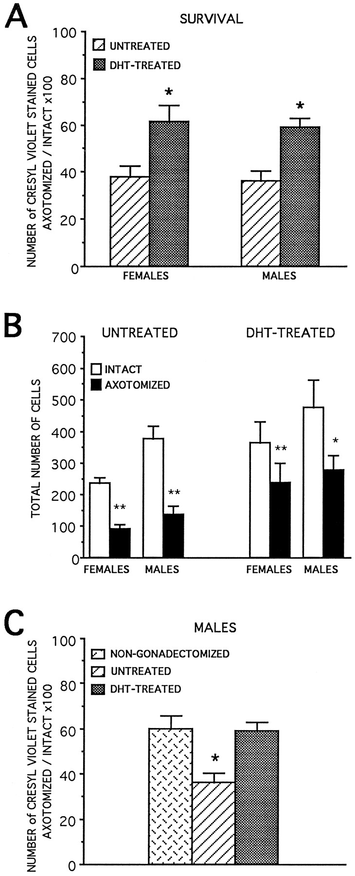 axotomy with or without DHT treatment (mean 6 SEM; n 5 4 animals/