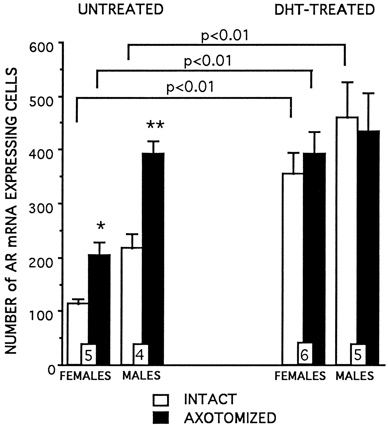animals had significantly more AR mRNA-expressing cells in the axotomized