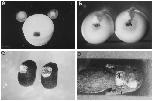 FIG. 5. (A) Transplantation of X. laevis animal cap to E. coqui gastrula. The large white E. coqui gastrula has received a transplant of a