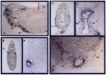Fig 6. Localization of X-msr transcript in the endothelial layer. (A) Parasagittal section of a larva at stage 32-33 showing the labeling in the procardiac tube (pt) and some primary blood vessels, such as the anterior cardinal vein (acv), aortic arches (aa) and intersomitic arteries (ia). (B) Transverse sec- tion at the level of the procardiac tube (pt). The lateral staining is in the aortic arch (aa). (C,D) Magnification of longitudinal and transverse procardiac tube sections. Note the exclusive labeling in the endocardium (En); myocardium (Myo) and pericardium (Per) am unstained. (E) Transverse section at the trunk level showing expression in both posterior cardinal veins (pcv). (F) Magnification of a transverse section at the trunk level. Note that the labeling is localized in the inner endothelial layer (white arrowhead). Abbreviations: e, eye; ph, pharynx; nt, neural tube; ov, otic vesicle; pc, pericar- dial cavity; not, notochord.