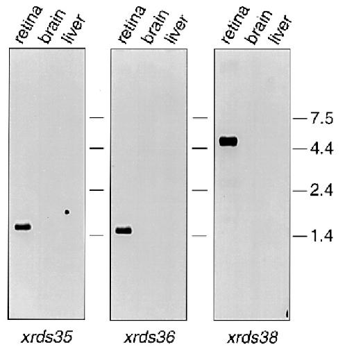 approximately 5 kb in Xenopus retina. None detect mRNAs in
