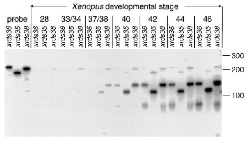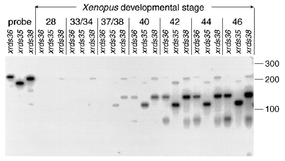 Fig. 3. Developmental expression of the xrds35, xrds36