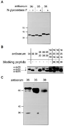 immobilized xrds36, -35, or -38 IgG fractions. After washing, bound