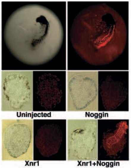 oocyte expressing both Xnr1 and noggin. Upper right panel: