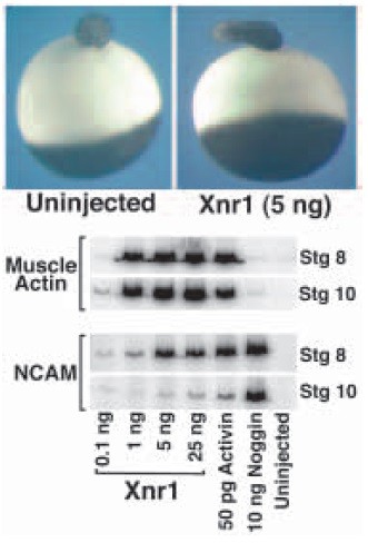 pg of Xnr1 RNA. Embryos were photographed when uninjected