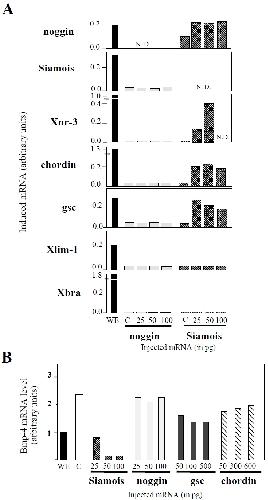 Xnr-3 and Xbra. (B) Effect of the overexpression of Siamois, noggin,