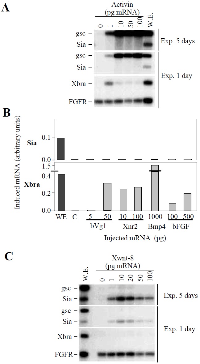 mRNAs. WE, whole embryo. (A) Effect of the injection of Siamois