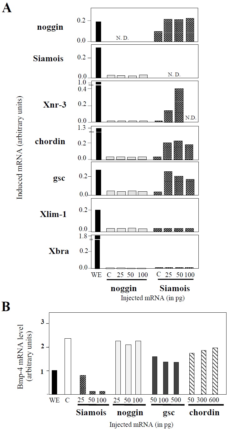 gsc and chordin in animal caps on the steady state level of Bmp-4