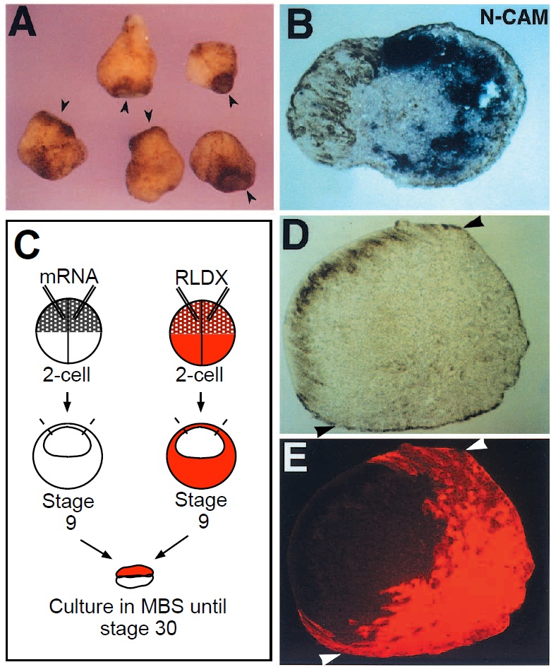 Siamois mRNA and an RLDx-injected animal cap. Arrowheads mark