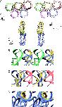 Figure 2. Comparison of the DNA parameters between human and X.laevis NCPs. (A) B-factors of phosphates, metal binding sites, r.m.s.d. values and twist base-pair-step parameter of the 146 bp DNA compared between human and X.laevis NCPs. The base pair numbers (−72 to 73) and SHL (−7 to 7) labels are the same as those in the earlier structures (11,12). The primary bound-phosphate groups are indicated above the base sequence by the pointers showing the strand direction (dark, 3′→5′; light, 5′→3′) and the interacting histone motif (L1, loop1; L2, loop 2; A1, α1). B-factors (Å2) are plotted for the 5′ phosphate group of each base (brown for the I chain and forest green for the J chain). Mn2+ binding sites are indicated above the base sequence by the yellow and light blue arrows (solid, binding the DNA major groove; broken, binding the DNA minor groove) in the structures of human and X.laevis NCPs (PDB code 1KX3) (11), respectively. The r.m.s.d. values below the base sequence were calculated by the superposition of 18 or 19 bp between two NCPs. The twist base-pair-step parameters were plotted as open circles and closed squares for the human (yellow line) and X.laevis (light blue line) nucleosomal DNA, respectively. The pink, orange and green ellipsoids of the twist parameters represent the corresponding regions illustrated by those in Figures 3A and B and Figure 4A. (B–D) The simplified stereo model of the DNA duplexes in the regions surrounded by the ellipsoids in (A). The differences in helical twist are shown by the superposition between human (yellow) and X.laevis (light blue; PDB code 1KX3) (11) NCPs, based on the histone octamers alone. Numbers presented for each base pair are the same as those in Figure 2A.