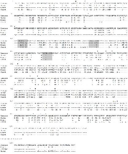 bold) in the Xenopus sequence. The nucleotide sequence for Xenopus