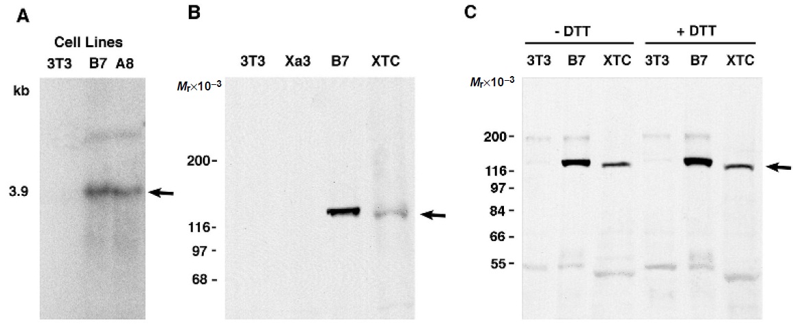 (3T3) cells, and the Xenopus cell line (XTC) were separated by SDS-PAGE and immunoblotted with an antisera to the conserved