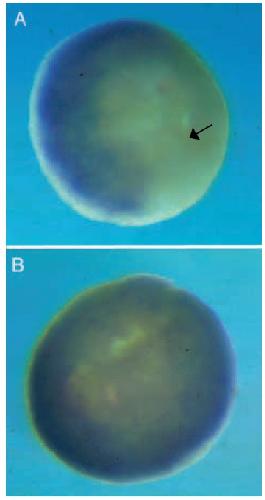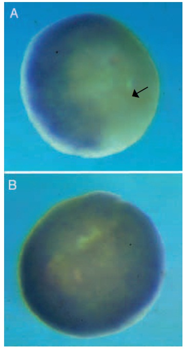 organizer (B). Apparent lack of expression in vegetal tissue is