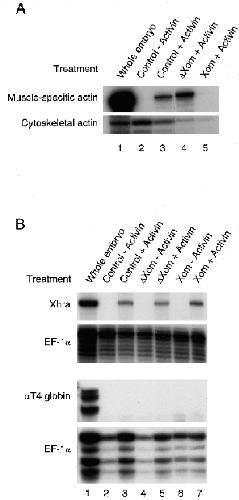 (muscle-specific) actin is inhibited by Xom RNA but not by DXom.