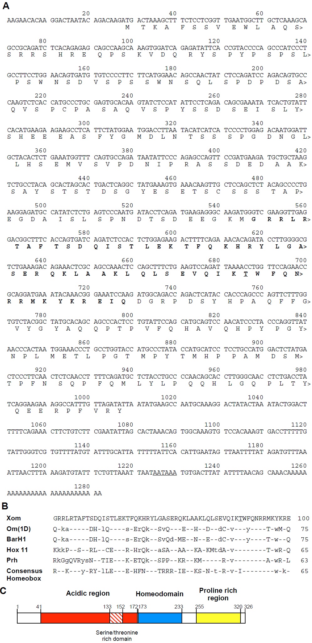 Fig. 1. (A) Xom cDNA sequence and deduced
