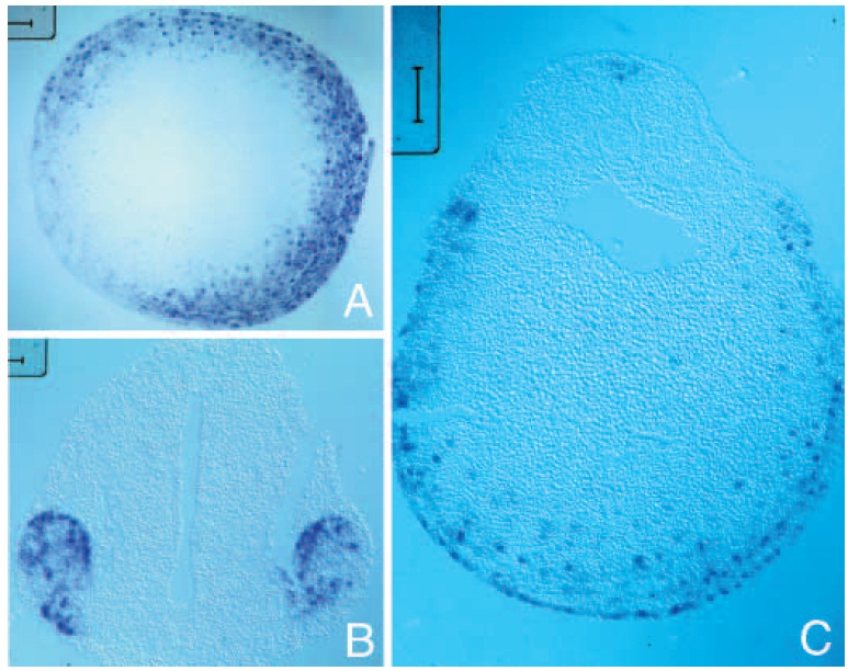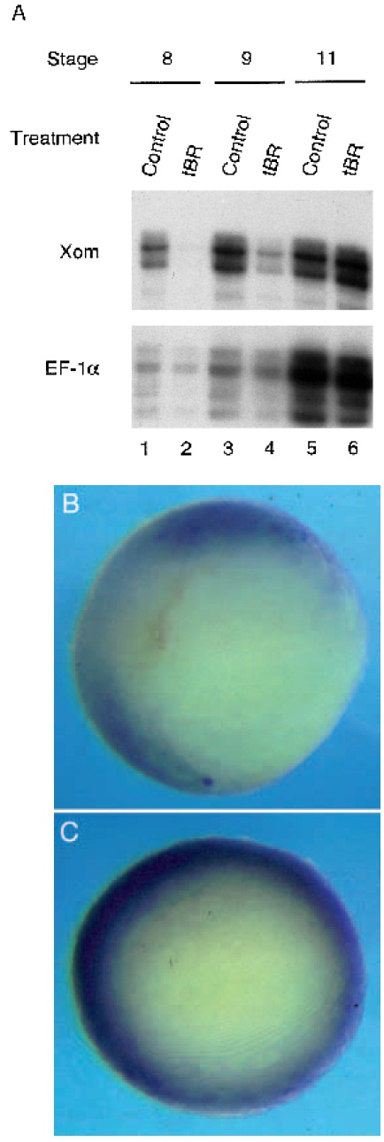 hybridization using a probe specific for Xom. (A) Section of stage-