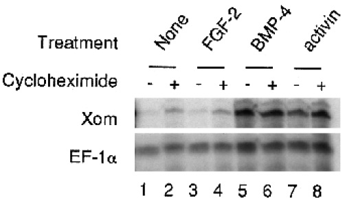 Fig. 6. Activation of Xom expression by activin and BMP-4 is not